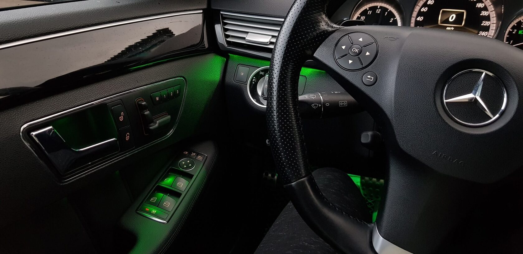 Как мы много раз говорили - в машинах есть очень тусклый штатный амбиент в салоне, но его даже днем видно с трудом.