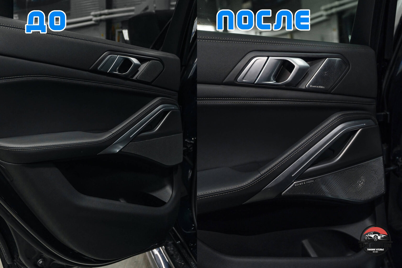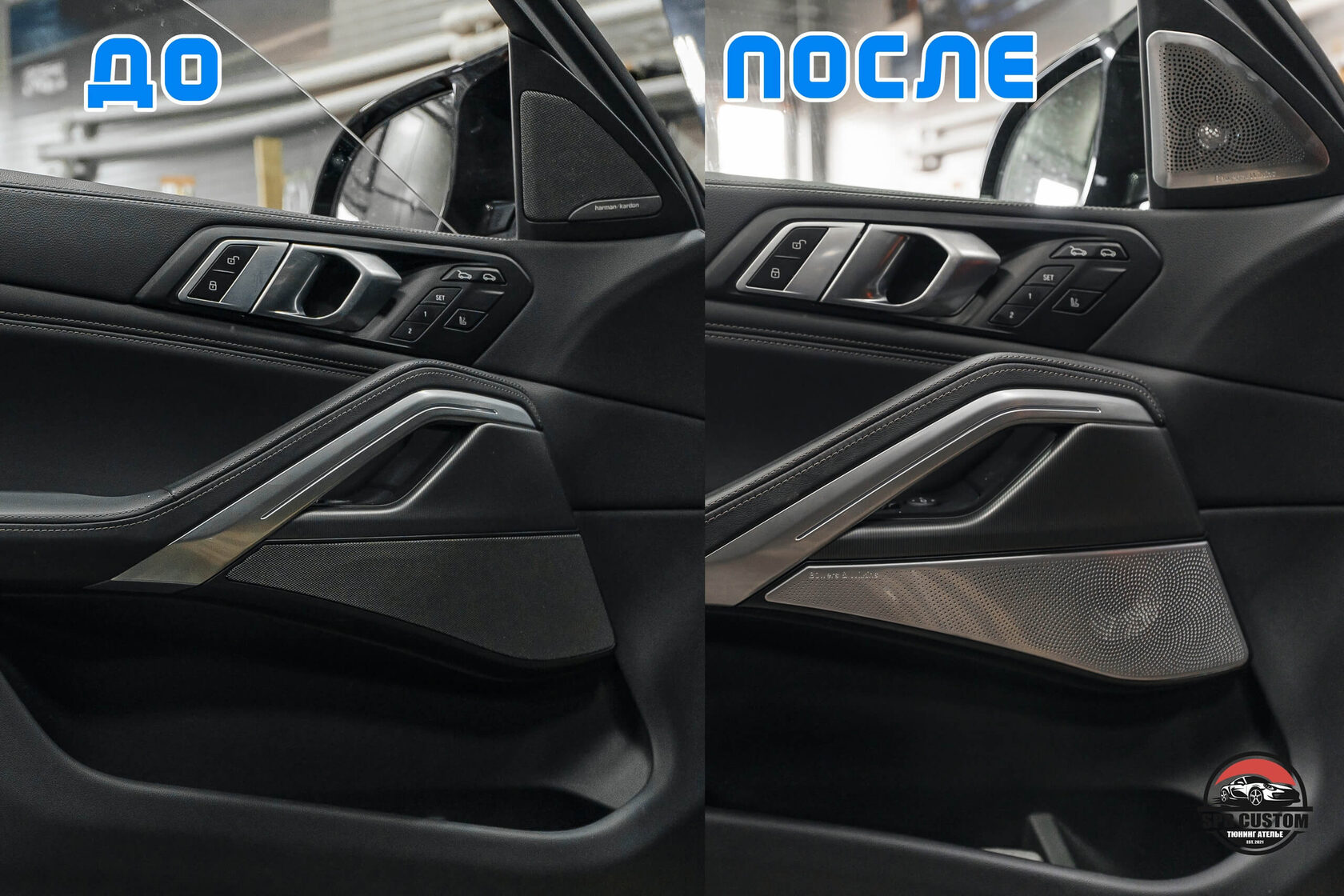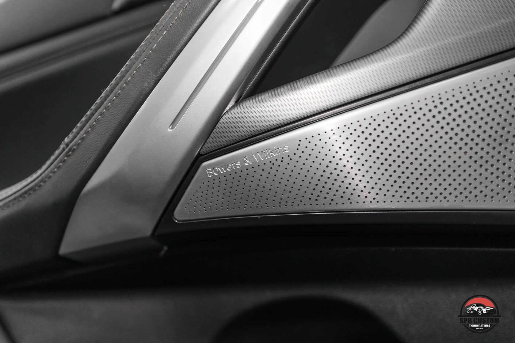 Клиент захотел установить новый руль в карбоне и перфорации на коже, и комплект накладок B&W на динамики штатной аудиосистемы.